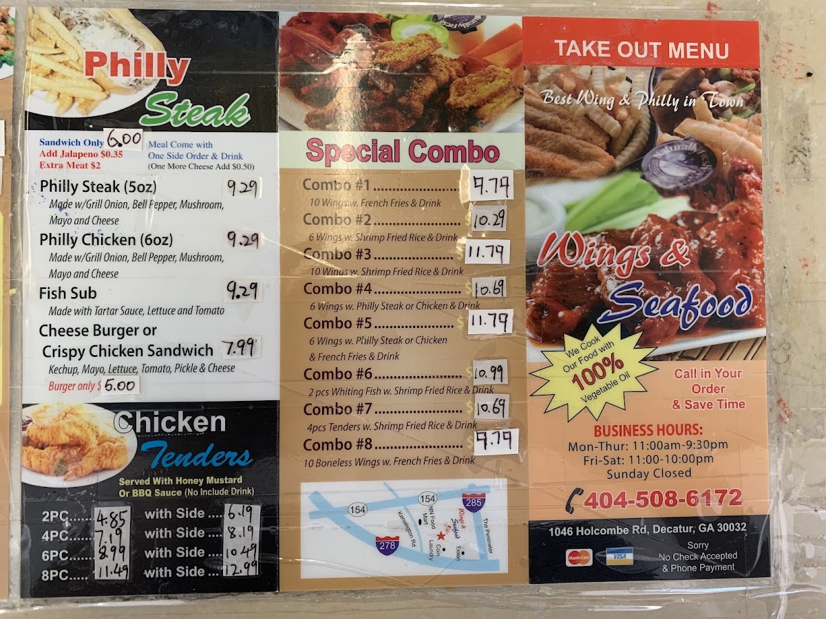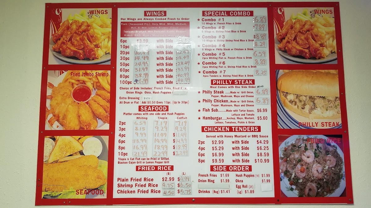 Welcome to Wings & Seafood, located at 1046 Holcombe Rd in Decatur, GA. This delightful eatery is celebrated for its commitment to fresh, hot food and exceptional service, as noted by many satisfied customers. The highlight is undoubtedly the lemon pepper wings, which one patron declares the best he's ever had. The house special seafood rice and lo mein also garner rave reviews for their quality and freshness, setting them apart from typical fast-food offerings. Owned by a caring family, Wings & Seafood fosters a warm atmosphere where every dish is crafted with care. Visit for a delicious dining experience!